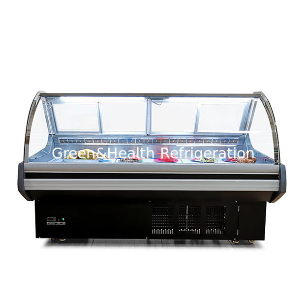 1ヨーロッパの肉の展示ケースは,冷却の均等な分布のために二重冷却システムを使用し,正確な2°Cから3°Cの温度を維持します.
