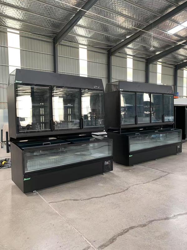 私たちの組み合わせた冷凍機シリーズ高容量冷蔵庫の上に垂直ガラスドアのディスプレイを積み重ねることでこのユニットは,フロアフットプリントを増やすことなく,あなたのマーチャンダイジングの可能性を倍にします..